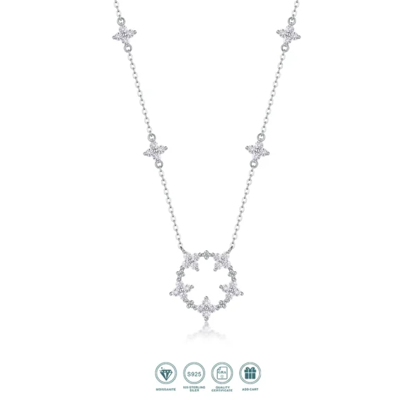 JIUZUAN Star Circle Pendant Necklace 925 Sterling Silver 18K Gold Plated Delicate Jewelry for Women Comes with GRA Certificate
